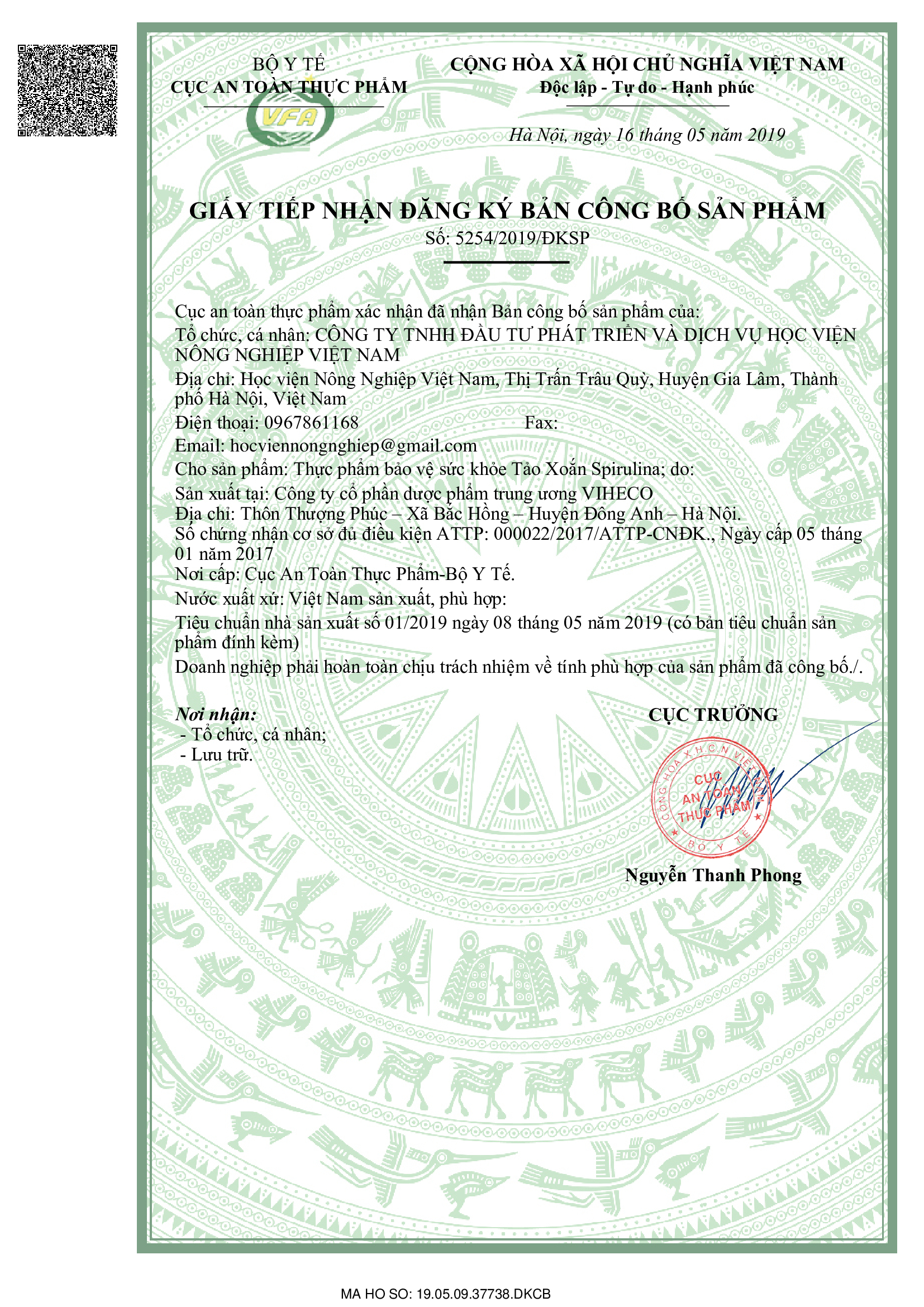 KIỂM NGHIỆM CHẤT LƯỢNG TẢO XOẮN SPIRULINA CỦA VIỆN KIỂM NGHIỆM AN TOÀN THỰC PHẨM QUỐC GIA (NIFC)