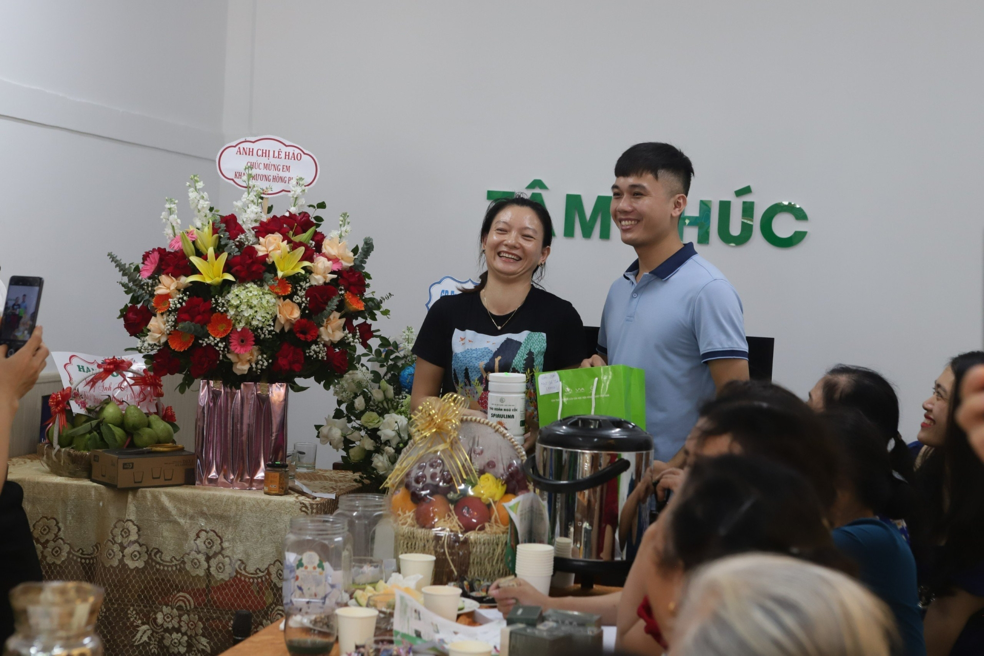 Hình ảnh anh Bạch Linh-chủ cửa hàng Phyco Store Tâm Phúc đang đứng cạnh chị gái trong ngày khai trương cửa hàng.