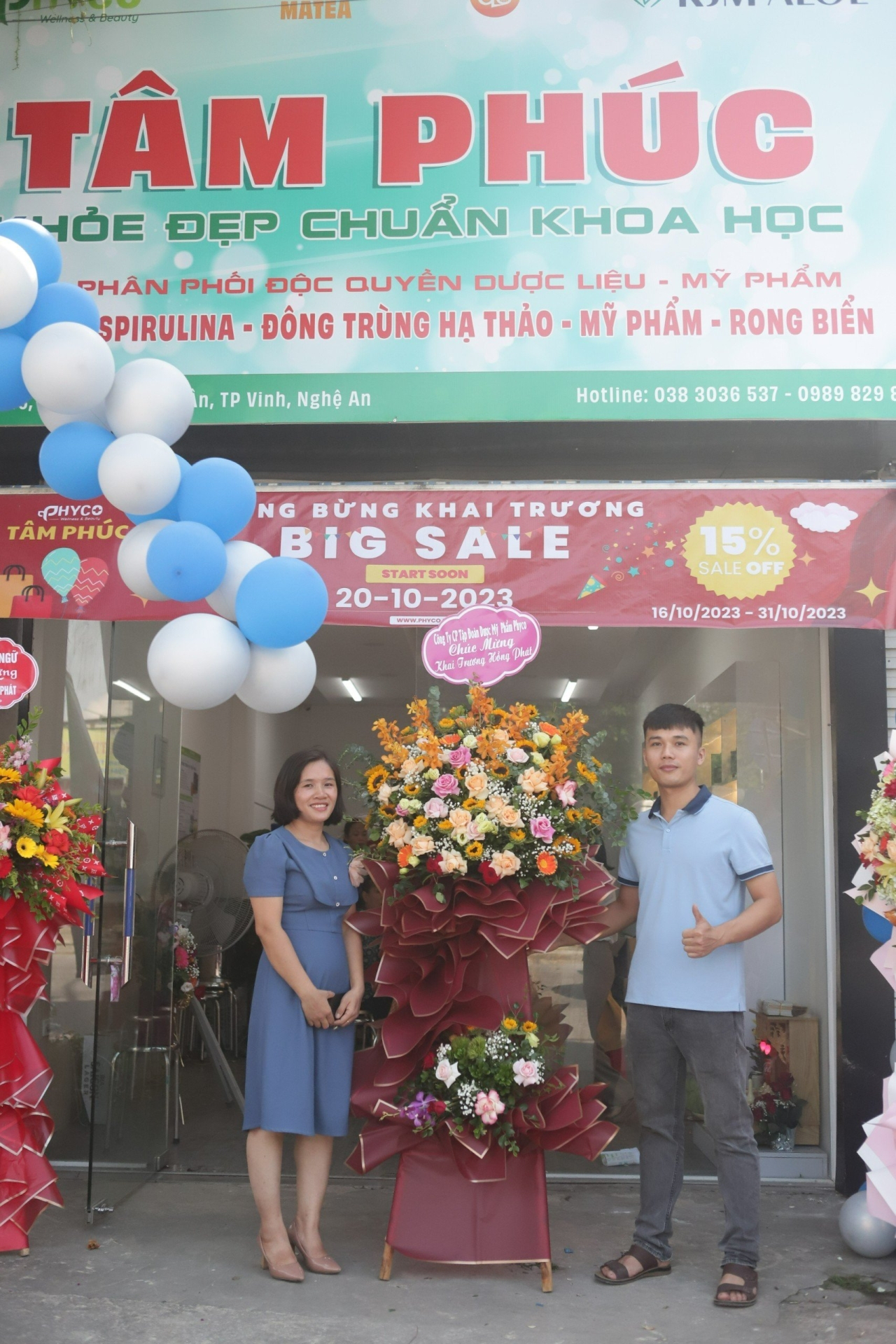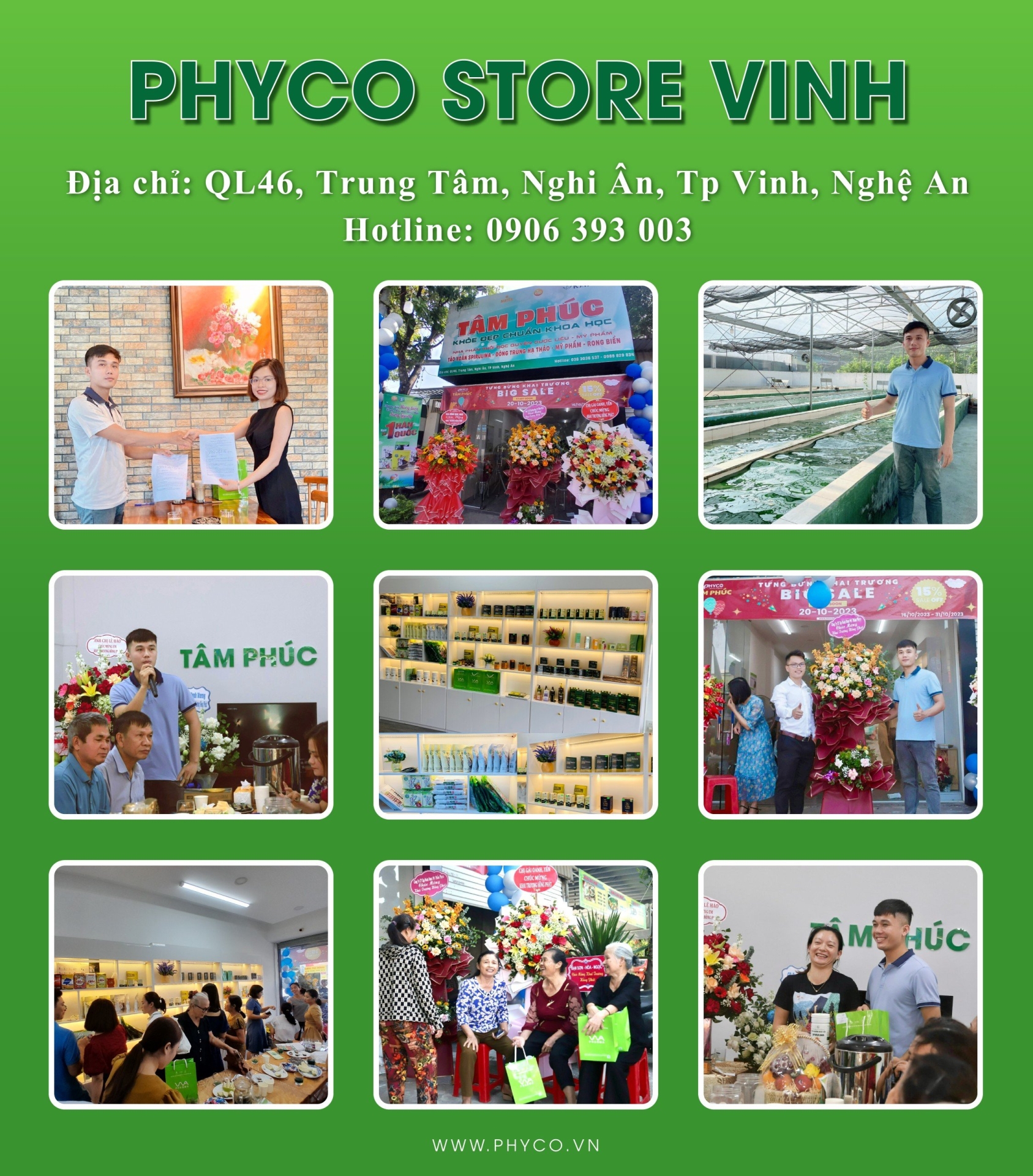 Ngày 20/10/2023,tại xóm Trung Tâm, xã Nghi Ân, TP Vinh, Nghệ An, sự kiện khai trương cửa hàng PHYCO STORE Tâm Phúc đã diễn ra với sự hân hoan và phấn khởi trong 1 ngày cuối tuần đầy cảm xúc. Sự kiện đánh dấu sự xuất hiện của các sản phẩm thực phẩm chức năng được làm từ nguồn nguyên liệu chính là tảo xoắn và đông trùng hạ thảo được nghiên cứu và phát triển bởi viện nghiên cứu Vi tảo và dược mỹ phẩm- học viện Nông nghiệp Việt Nam, và các sản phẩm mỹ phẩm nhập khẩu chính ngạch Hàn Quốc đến từ thương hiệu KJM ALOE trên thị trường tỉnh Nghệ An.