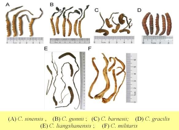 Hai loài nấm đông trùng hạ thảo được sử dụng lâu đời trong y học cổ truyền Trung Quốc là Cordyceps sinensis (tên khác: Ophiocordyceps sinensis) và Cordyceps militaris.