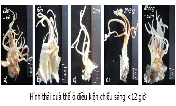 Hình thái quả thể nuôi bằng tảo xoắn Spirulina