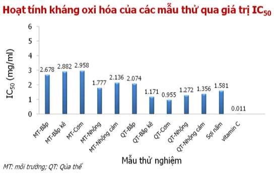Qua các giá trị IC50 cho thấy tất cả các thành phần sản phẩm nấm C. militaris đều cho khả năng kháng oxi hóa.